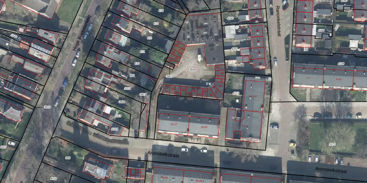 Aronskelkstraat 9-R is gelegen op kadastraal perceel LNK00Q3608. Deze kadastrale aanduiding is uniek en wordt gebruikt door het Kadaster om eigendomsrechten en andere zakelijke rechten vast te leggen. Het perceel maakt onderdeel uit van de kadastrale gemeente Lonneker.