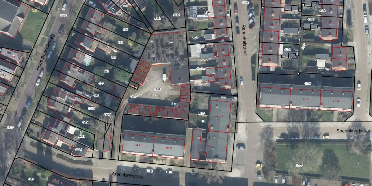 Aronskelkstraat 9-H is gelegen op kadastraal perceel LNK00Q3608. Deze kadastrale aanduiding is uniek en wordt gebruikt door het Kadaster om eigendomsrechten en andere zakelijke rechten vast te leggen. Het perceel maakt onderdeel uit van de kadastrale gemeente Lonneker.