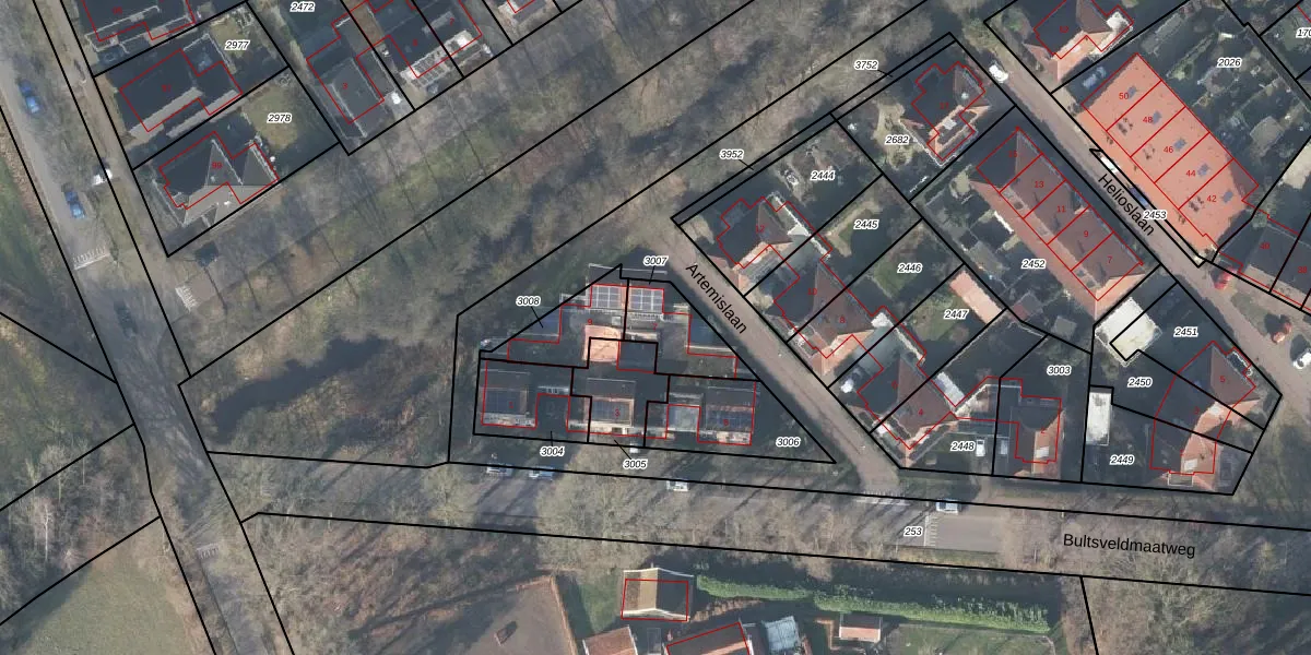 Artemislaan 7 is gelegen op kadastraal perceel LNK00AA3007. Deze kadastrale aanduiding is uniek en wordt gebruikt door het Kadaster om eigendomsrechten en andere zakelijke rechten vast te leggen. Het perceel maakt onderdeel uit van de kadastrale gemeente Lonneker.