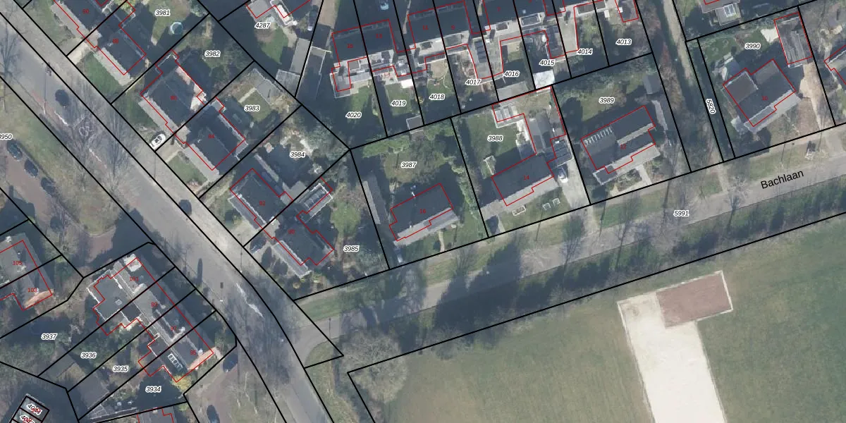 Bachlaan 16 is gelegen op kadastraal perceel LNK00B3987. Deze kadastrale aanduiding is uniek en wordt gebruikt door het Kadaster om eigendomsrechten en andere zakelijke rechten vast te leggen. Het perceel maakt onderdeel uit van de kadastrale gemeente Lonneker.