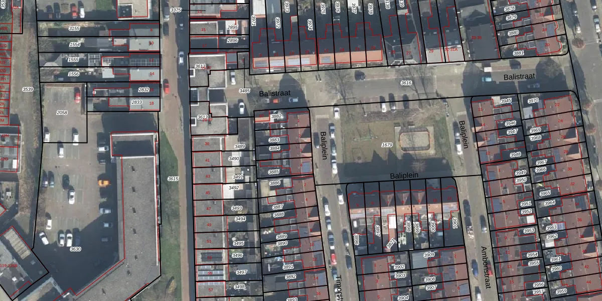 Het perceel waarop Baliplein 3 staat heeft een oppervlakte van 91 m². Dit is een klein perceel. De perceeloppervlakte wordt geregistreerd door het Kadaster. Gedetailleerde informatie over de maten van dit perceel kunt u vinden in het rapport Kadastrale kaart met maatvoering van Baliplein 3.