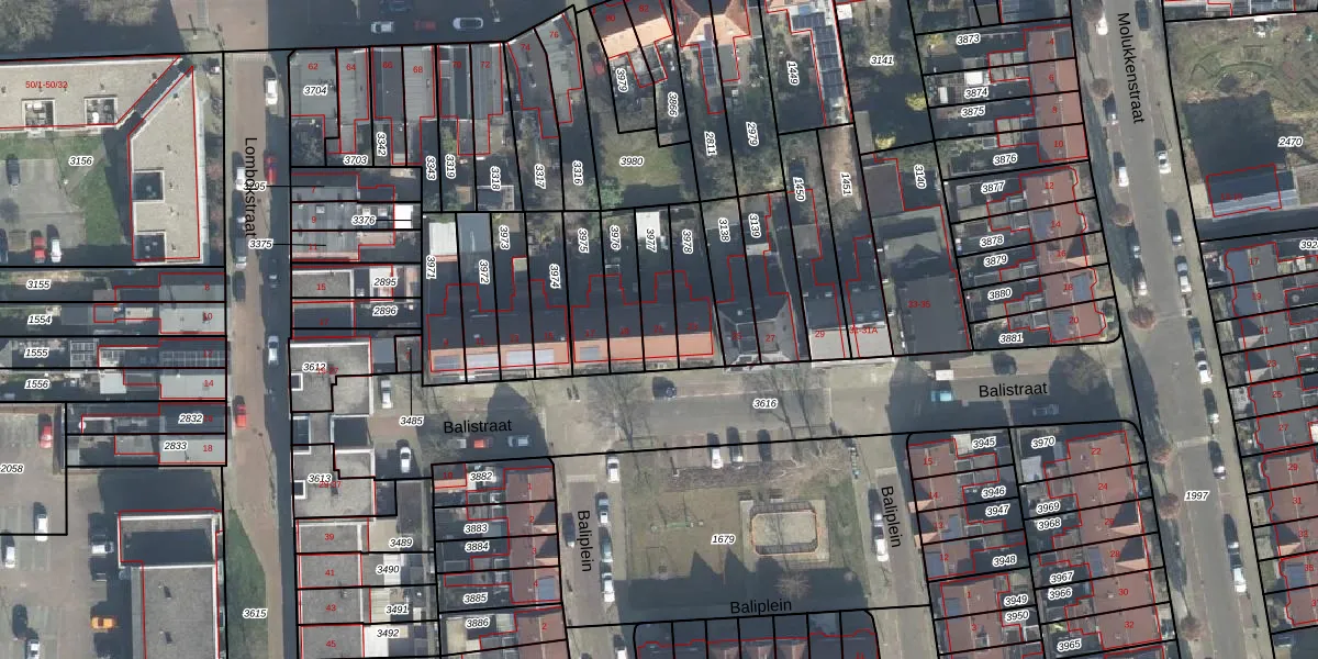 Gebruik de zoekbalk of klik op een perceel voor informatie over de adressen binnen dit perceel.
