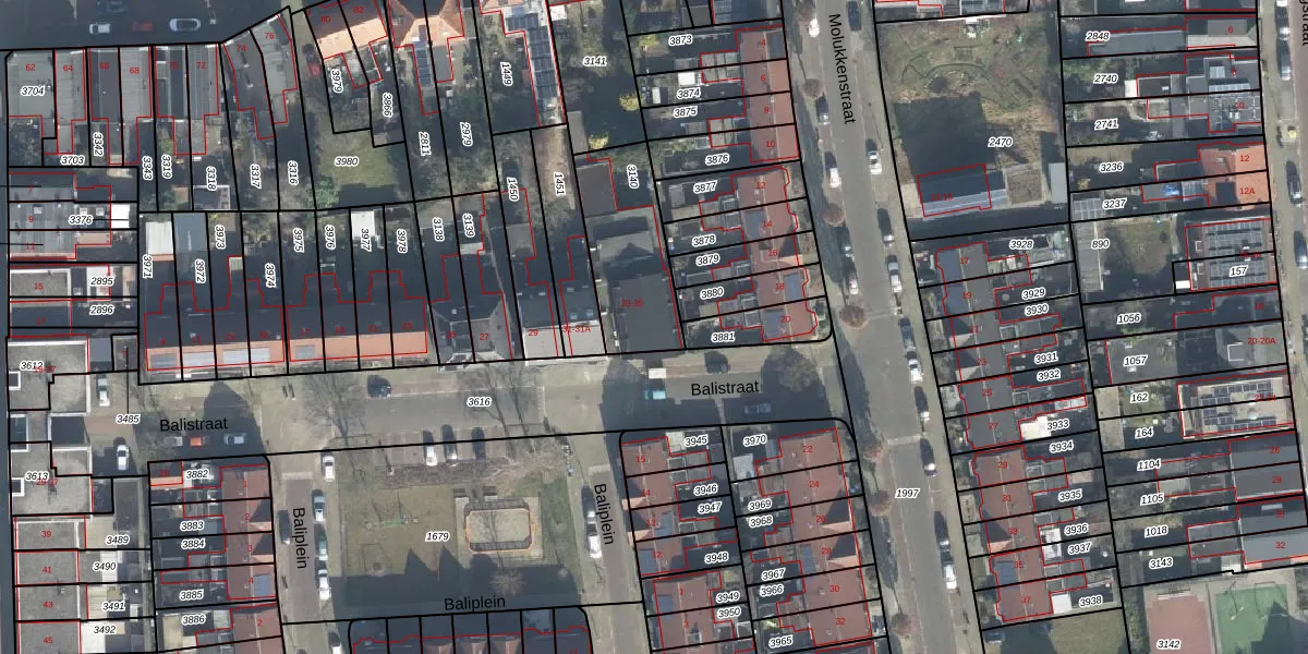 Het perceel waarop Balistraat 35 staat heeft een oppervlakte van 373 m². Dit is een groot perceel. De perceeloppervlakte wordt geregistreerd door het Kadaster. Gedetailleerde informatie over de maten van dit perceel kunt u vinden in het rapport Kadastrale kaart met maatvoering van Balistraat 35.