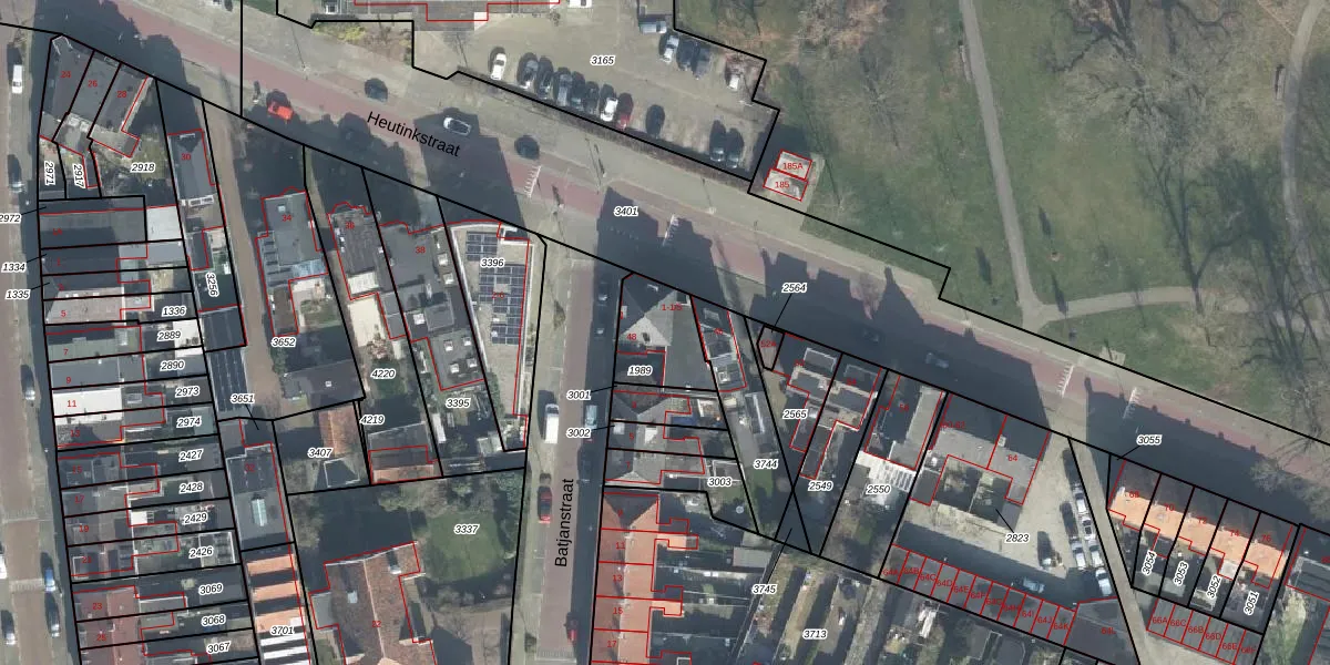 Het perceel waarop Batjanstraat 1-5 staat heeft een oppervlakte van 206 m². Dit is een middelgroot perceel. De perceeloppervlakte wordt geregistreerd door het Kadaster. Gedetailleerde informatie over de maten van dit perceel kunt u vinden in het rapport Kadastrale kaart met maatvoering van Batjanstraat 1-5.