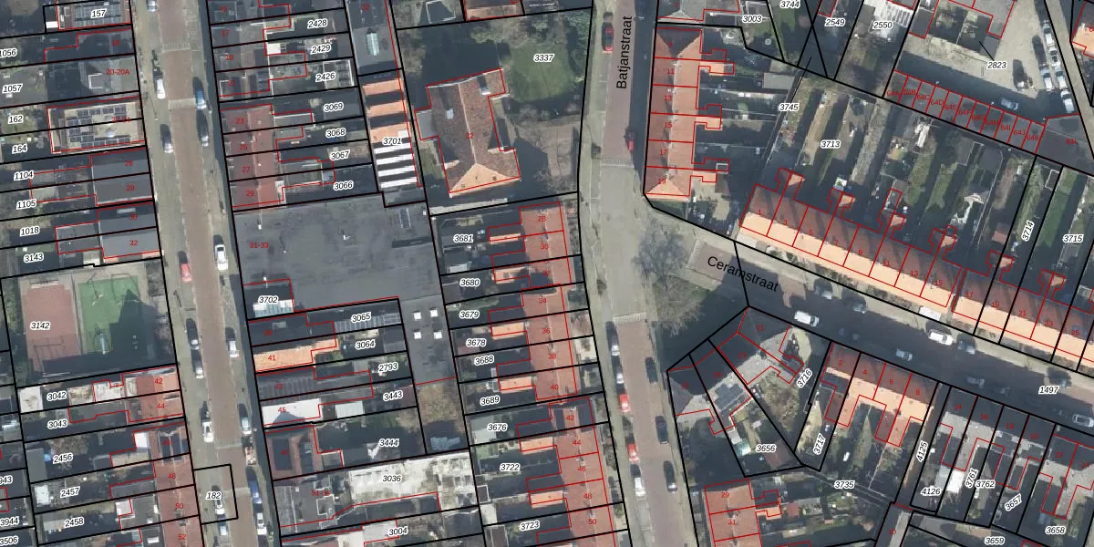 Gebruik de zoekbalk of klik op een perceel voor informatie over de adressen binnen dit perceel.
