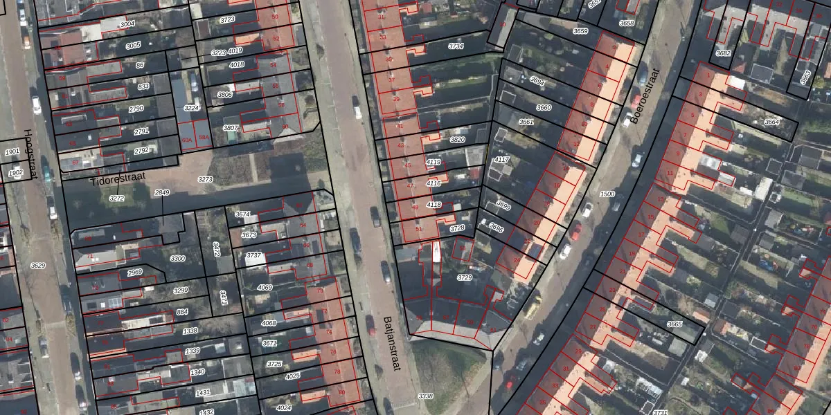Het perceel waarop Batjanstraat 49 staat heeft een oppervlakte van 113 m². Dit is een middelgroot perceel. De perceeloppervlakte wordt geregistreerd door het Kadaster. Gedetailleerde informatie over de maten van dit perceel kunt u vinden in het rapport Kadastrale kaart met maatvoering van Batjanstraat 49.