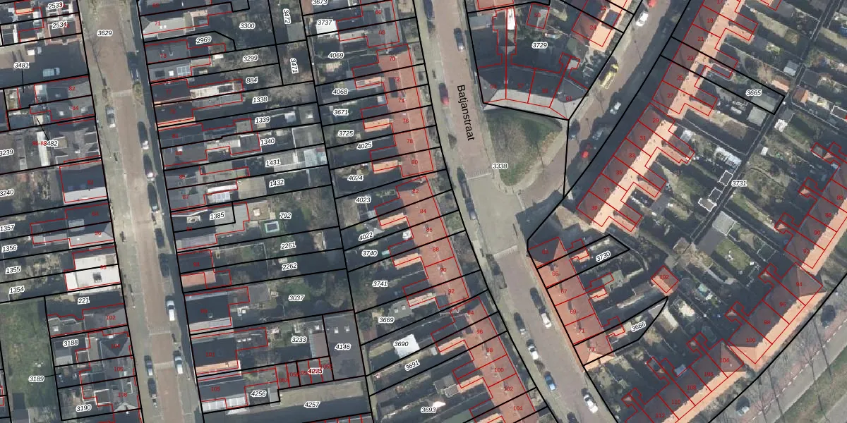 Gebruik de zoekbalk of klik op een perceel voor informatie over de adressen binnen dit perceel.