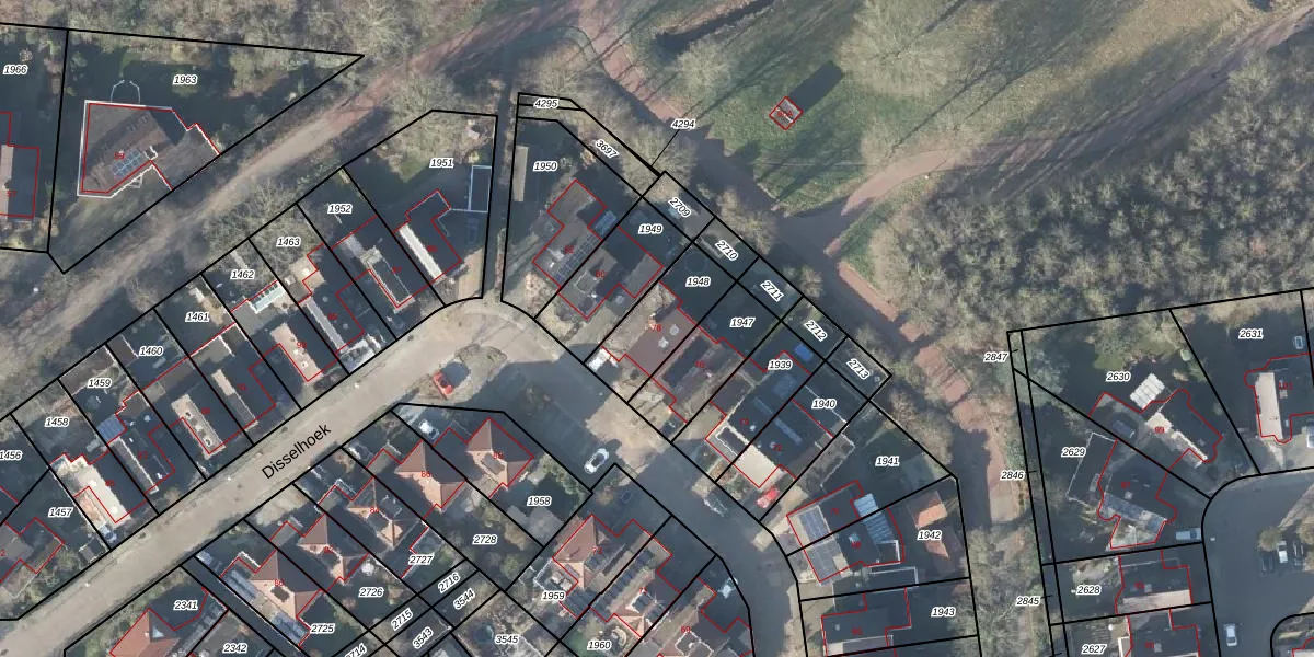 Gebruik de zoekbalk of klik op een perceel voor informatie over de adressen binnen dit perceel.
