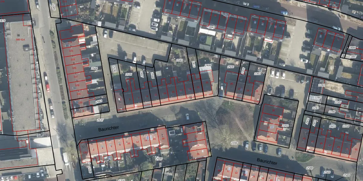 Het perceel waarop Baurichter 17 staat heeft een oppervlakte van 536 m². Dit is een groot perceel. De perceeloppervlakte wordt geregistreerd door het Kadaster. Gedetailleerde informatie over de maten van dit perceel kunt u vinden in het rapport Kadastrale kaart met maatvoering van Baurichter 17.