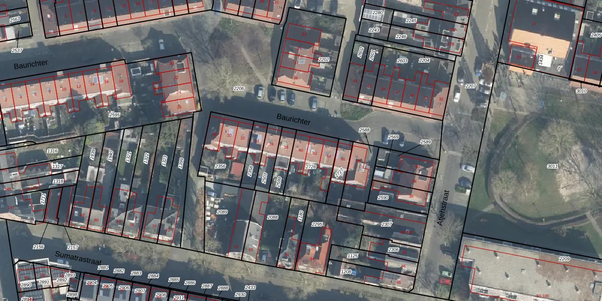 Het perceel waarop Baurichter 40 staat heeft een oppervlakte van 316 m². Dit is een groot perceel. De perceeloppervlakte wordt geregistreerd door het Kadaster. Gedetailleerde informatie over de maten van dit perceel kunt u vinden in het rapport Kadastrale kaart met maatvoering van Baurichter 40.