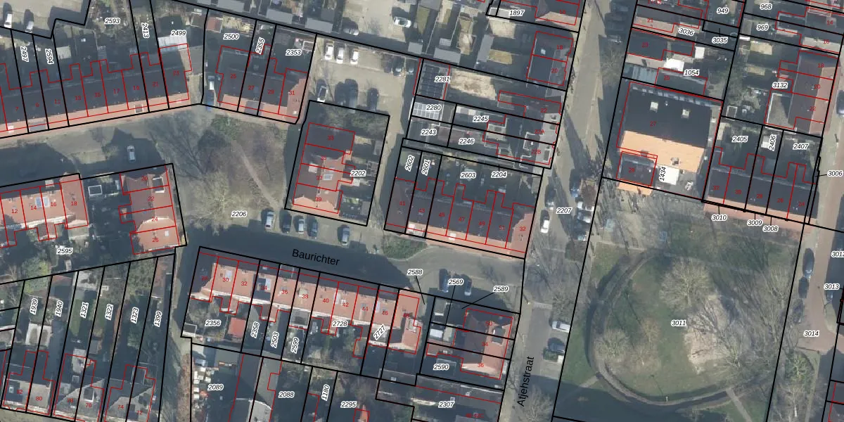 Het perceel waarop Baurichter 43 staat heeft een oppervlakte van 96 m². Dit is een klein perceel. De perceeloppervlakte wordt geregistreerd door het Kadaster. Gedetailleerde informatie over de maten van dit perceel kunt u vinden in het rapport Kadastrale kaart met maatvoering van Baurichter 43.