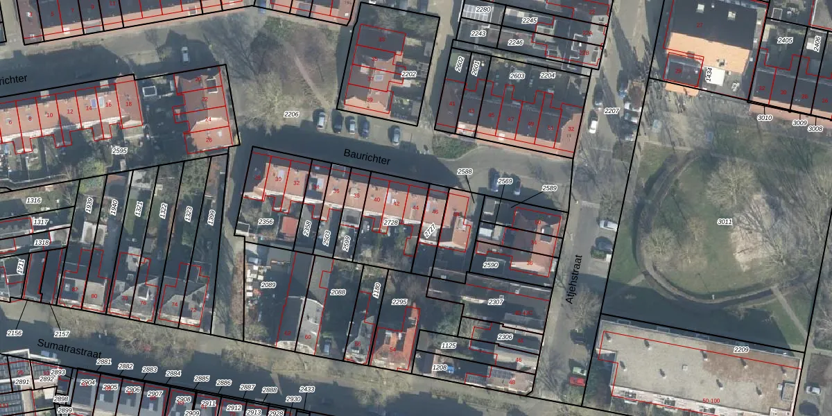 Het perceel waarop Baurichter 44 staat heeft een oppervlakte van 316 m². Dit is een groot perceel. De perceeloppervlakte wordt geregistreerd door het Kadaster. Gedetailleerde informatie over de maten van dit perceel kunt u vinden in het rapport Kadastrale kaart met maatvoering van Baurichter 44.