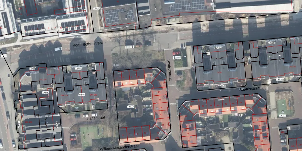 Beatrixstraat 10 is gelegen op kadastraal perceel ESD00D13622. Deze kadastrale aanduiding is uniek en wordt gebruikt door het Kadaster om eigendomsrechten en andere zakelijke rechten vast te leggen. Het perceel maakt onderdeel uit van de kadastrale gemeente Enschede.