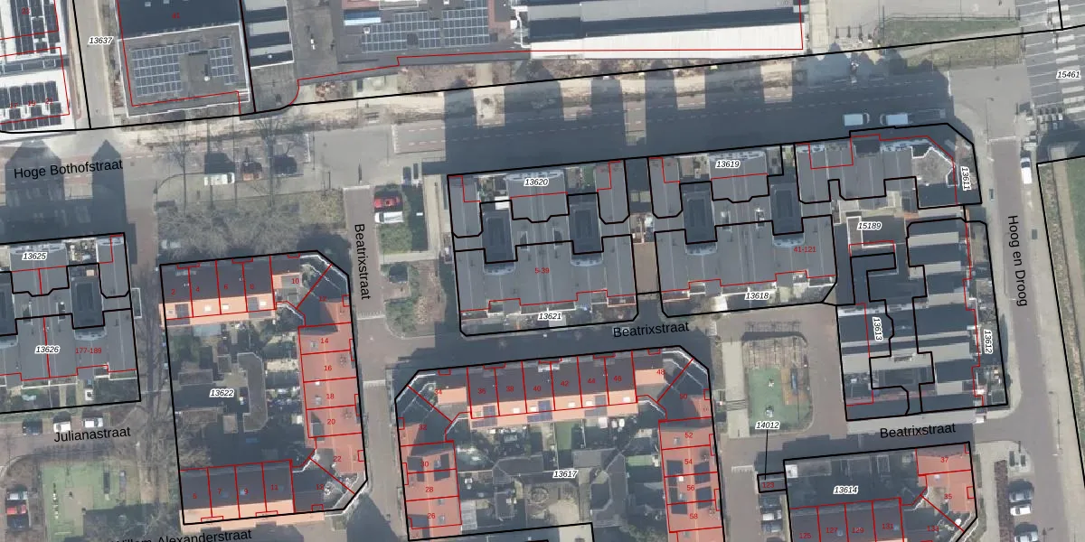 Beatrixstraat 37 is gelegen op kadastraal perceel ESD00D13621. Deze kadastrale aanduiding is uniek en wordt gebruikt door het Kadaster om eigendomsrechten en andere zakelijke rechten vast te leggen. Het perceel maakt onderdeel uit van de kadastrale gemeente Enschede.
