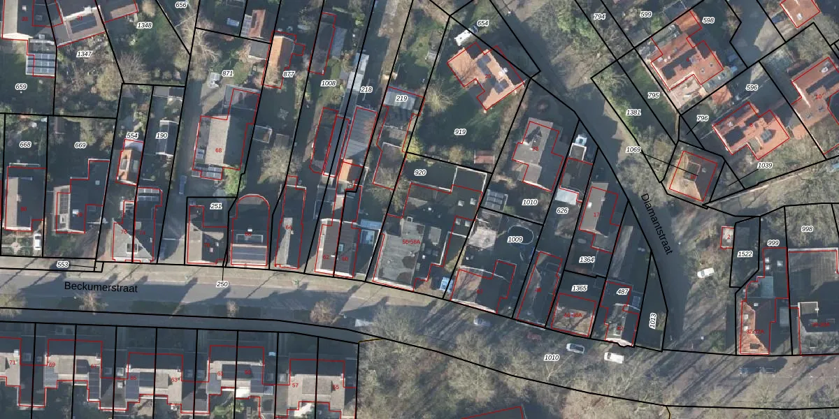 Het perceel waarop Beckumerstraat 56 staat heeft een oppervlakte van 657 m². Dit is een groot perceel. De perceeloppervlakte wordt geregistreerd door het Kadaster. Gedetailleerde informatie over de maten van dit perceel kunt u vinden in het rapport Kadastrale kaart met maatvoering van Beckumerstraat 56.