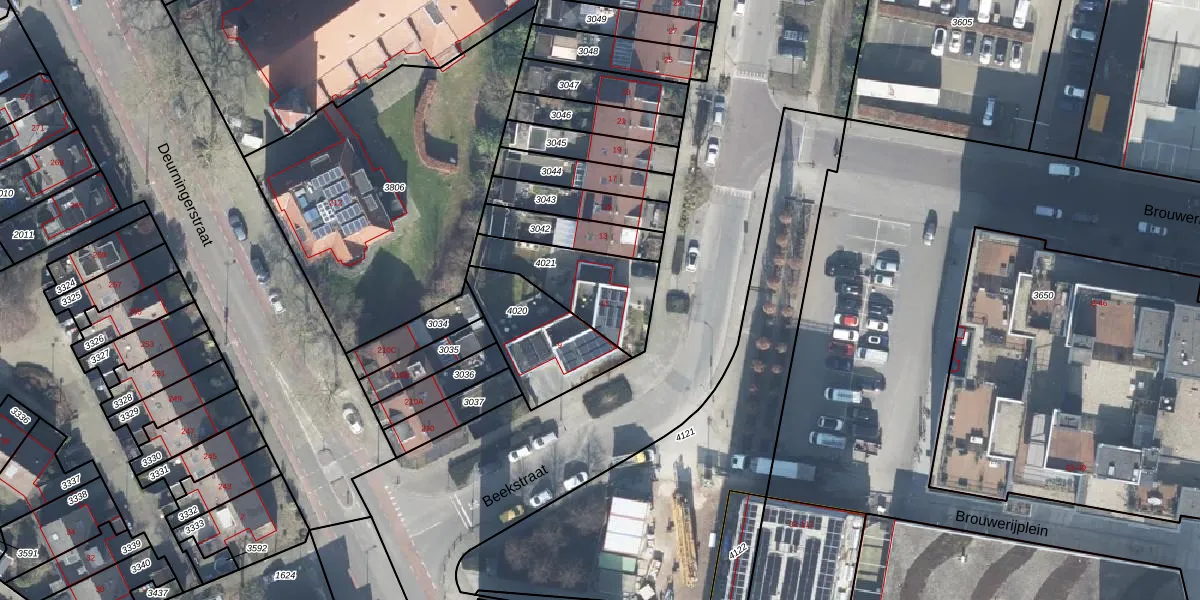 Gebruik de zoekbalk of klik op een perceel voor informatie over de adressen binnen dit perceel.