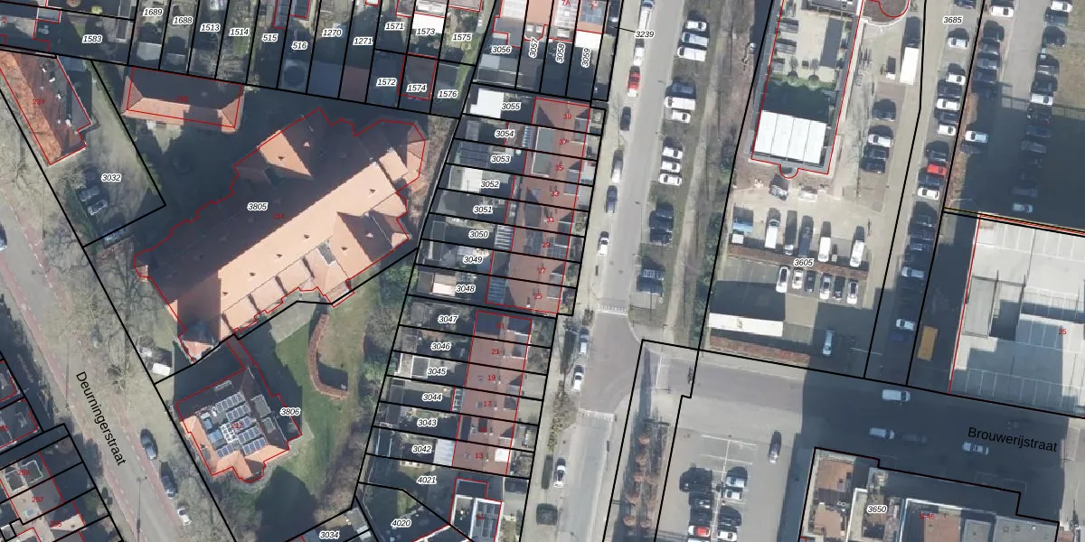 Het perceel waarop het adres ligt is ESD00-K-3049. De afkorting 'ESD00' staat voor kadastrale gemeente Enschede. Het perceel is 146 m² groot. Dat is kleiner dan de gemiddelde perceeloppervlakte in Enschede, dat op 548,31 m² ligt. De grootste perceeloppervlakte in de kadastrale gemeente is 10,7 ha. De kleinste oppervlakte bedraagt 0 m². Er zijn geen andere adressen aanwezig op het perceel. De huidige grenzen van het perceel zijn digitaal in de Basisregistratie Kadaster (BRK) geregistreerd op 29-12-2015.