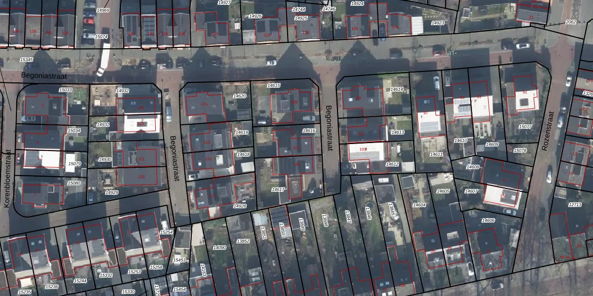 Het perceel waarop Begoniastraat 107 staat heeft een oppervlakte van 242 m². Dit is een middelgroot perceel. De perceeloppervlakte wordt geregistreerd door het Kadaster. Gedetailleerde informatie over de maten van dit perceel kunt u vinden in het rapport Kadastrale kaart met maatvoering van Begoniastraat 107.
