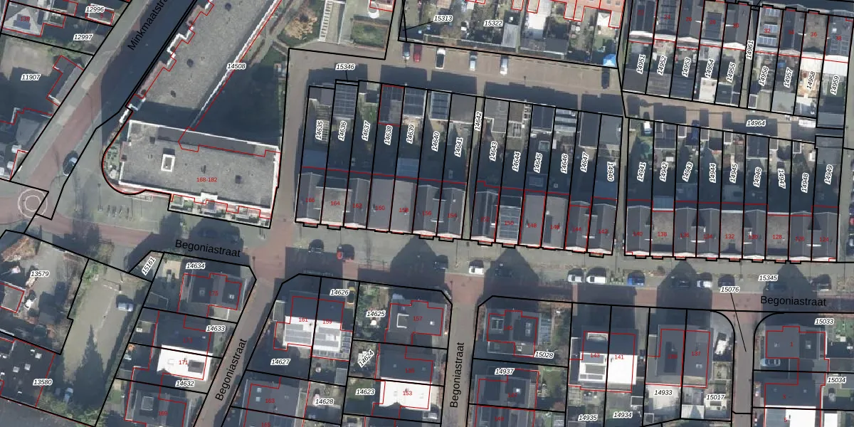 Het perceel waarop Begoniastraat 156 staat heeft een oppervlakte van 196 m². Dit is een middelgroot perceel. De perceeloppervlakte wordt geregistreerd door het Kadaster. Gedetailleerde informatie over de maten van dit perceel kunt u vinden in het rapport Kadastrale kaart met maatvoering van Begoniastraat 156.