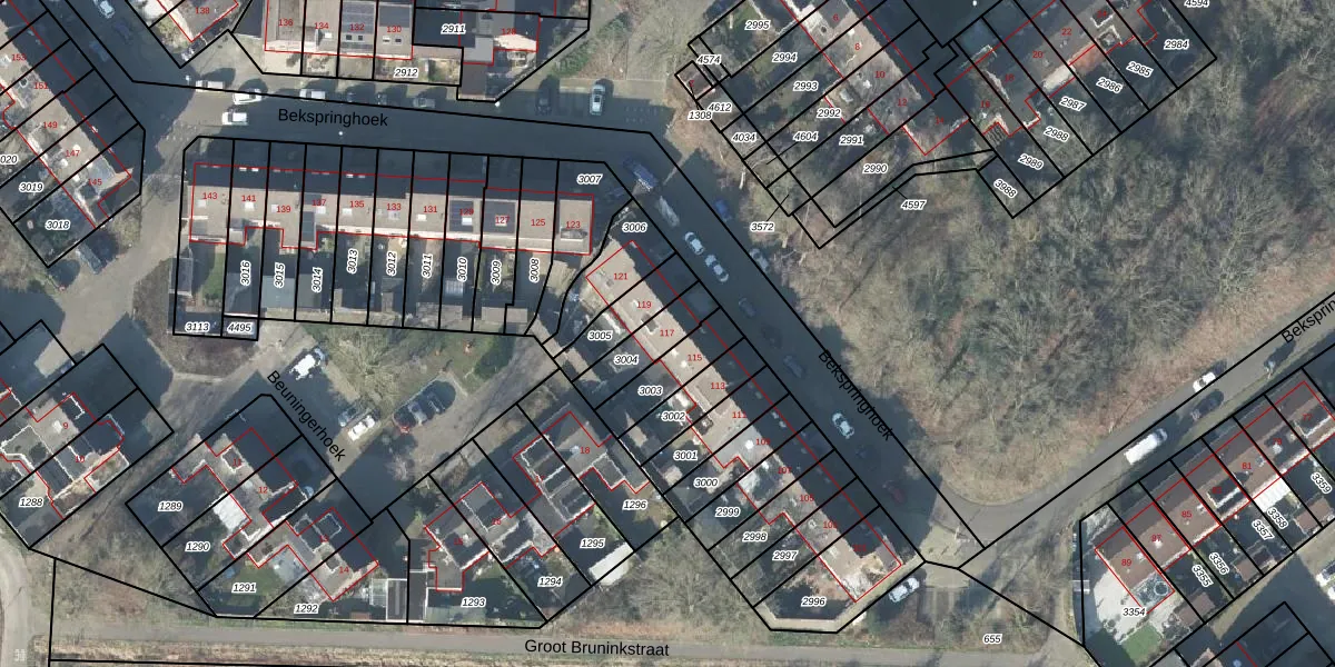 Het perceel waarop Bekspringhoek 117 staat heeft een oppervlakte van 133 m². Dit is een middelgroot perceel. De perceeloppervlakte wordt geregistreerd door het Kadaster. Gedetailleerde informatie over de maten van dit perceel kunt u vinden in het rapport Kadastrale kaart met maatvoering van Bekspringhoek 117.
