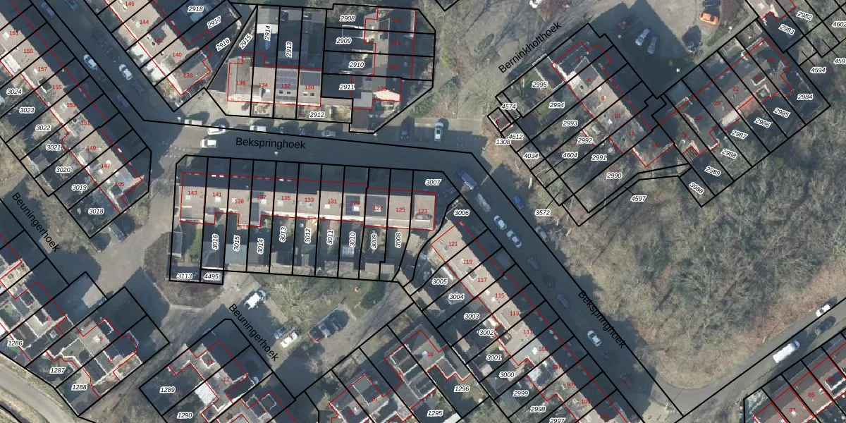 Bekspringhoek 123 is gelegen op kadastraal perceel LNK00U3007. Deze kadastrale aanduiding is uniek en wordt gebruikt door het Kadaster om eigendomsrechten en andere zakelijke rechten vast te leggen. Het perceel maakt onderdeel uit van de kadastrale gemeente Lonneker.