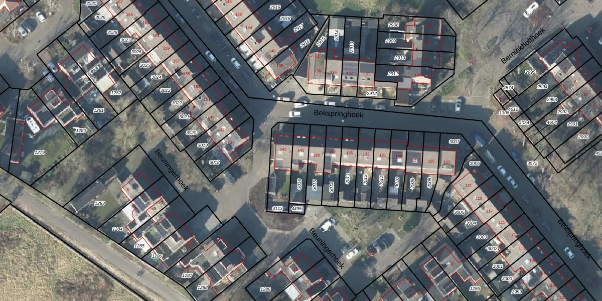 Bekspringhoek 141 is gelegen op kadastraal perceel LNK00U3016. Deze kadastrale aanduiding is uniek en wordt gebruikt door het Kadaster om eigendomsrechten en andere zakelijke rechten vast te leggen. Het perceel maakt onderdeel uit van de kadastrale gemeente Lonneker.