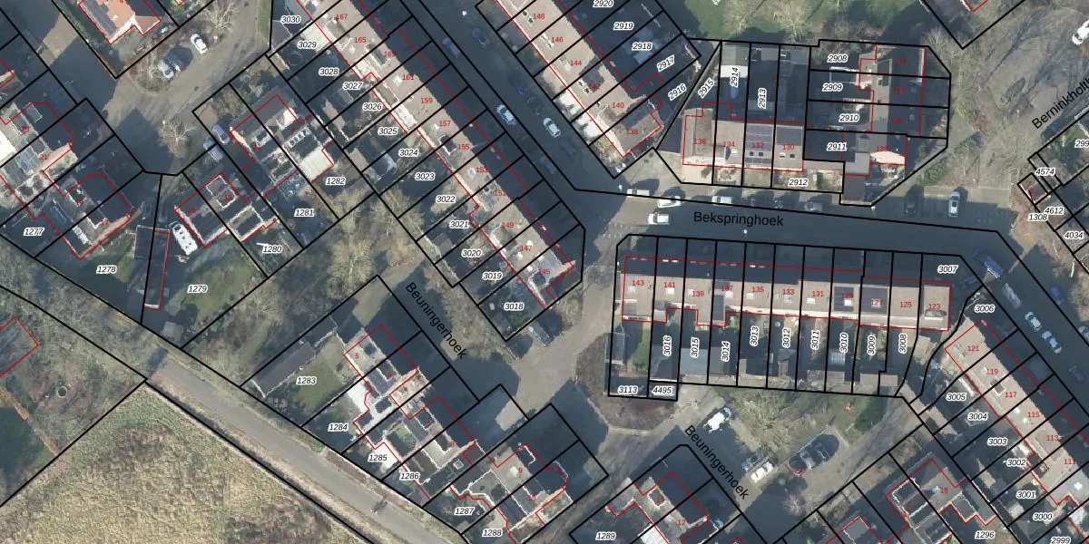 Bekspringhoek 145 is gelegen op kadastraal perceel LNK00U3018. Deze kadastrale aanduiding is uniek en wordt gebruikt door het Kadaster om eigendomsrechten en andere zakelijke rechten vast te leggen. Het perceel maakt onderdeel uit van de kadastrale gemeente Lonneker.