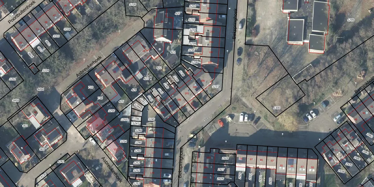 Het perceel waarop Bekspringhoek 191 staat heeft een oppervlakte van 135 m². Dit is een middelgroot perceel. De perceeloppervlakte wordt geregistreerd door het Kadaster. Gedetailleerde informatie over de maten van dit perceel kunt u vinden in het rapport Kadastrale kaart met maatvoering van Bekspringhoek 191.