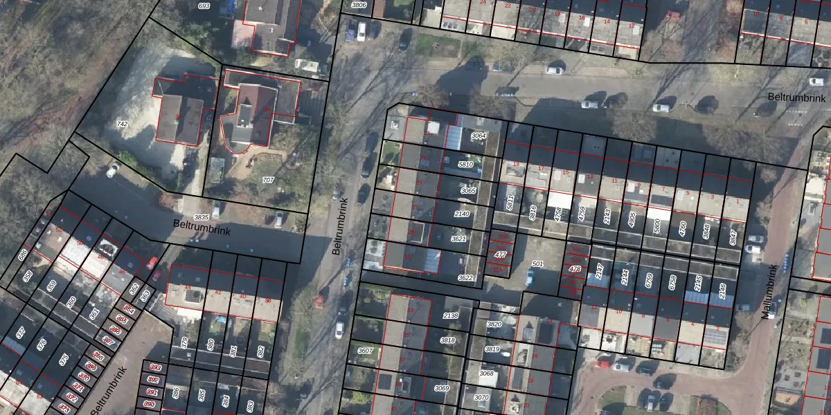 Het perceel waarop Beltrumbrink 27 staat heeft een oppervlakte van 175 m². Dit is een middelgroot perceel. De perceeloppervlakte wordt geregistreerd door het Kadaster. Gedetailleerde informatie over de maten van dit perceel kunt u vinden in het rapport Kadastrale kaart met maatvoering van Beltrumbrink 27.