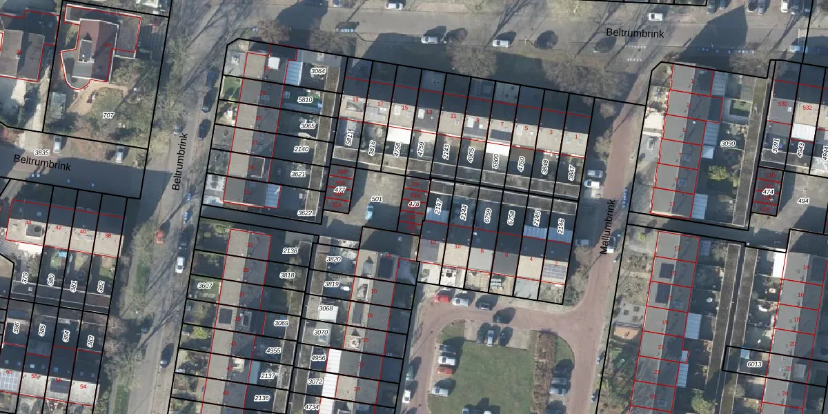 Het perceel waarop Beltrumbrink 31-G staat heeft een oppervlakte van 82 m². Dit is een klein perceel. De perceeloppervlakte wordt geregistreerd door het Kadaster. Gedetailleerde informatie over de maten van dit perceel kunt u vinden in het rapport Kadastrale kaart met maatvoering van Beltrumbrink 31-G.