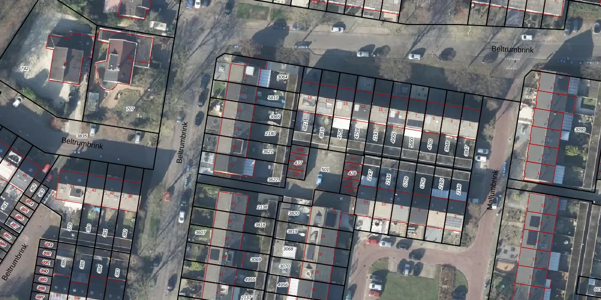 Beltrumbrink 31-D is gelegen op kadastraal perceel LNK00Z477. Deze kadastrale aanduiding is uniek en wordt gebruikt door het Kadaster om eigendomsrechten en andere zakelijke rechten vast te leggen. Het perceel maakt onderdeel uit van de kadastrale gemeente Lonneker.