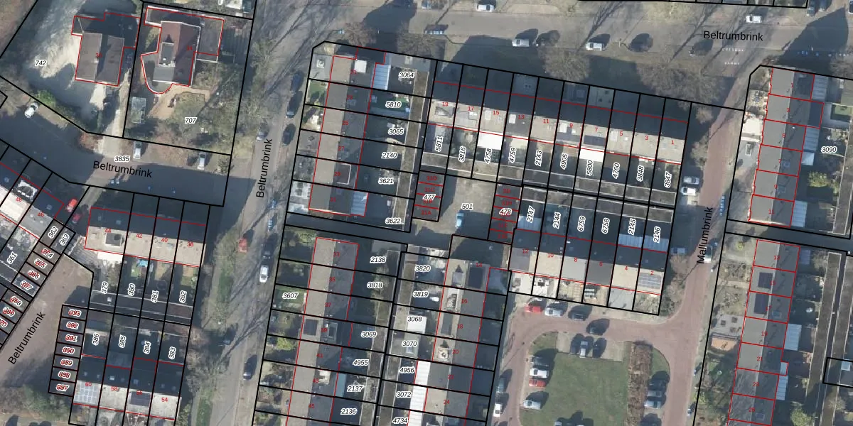 Beltrumbrink 31-A is gelegen op kadastraal perceel LNK00Z477. Deze kadastrale aanduiding is uniek en wordt gebruikt door het Kadaster om eigendomsrechten en andere zakelijke rechten vast te leggen. Het perceel maakt onderdeel uit van de kadastrale gemeente Lonneker.