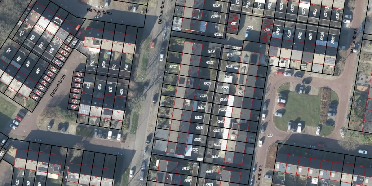Gebruik de zoekbalk of klik op een perceel voor informatie over de adressen binnen dit perceel.
