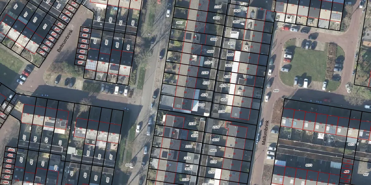 Gebruik de zoekbalk of klik op een perceel voor informatie over de adressen binnen dit perceel.