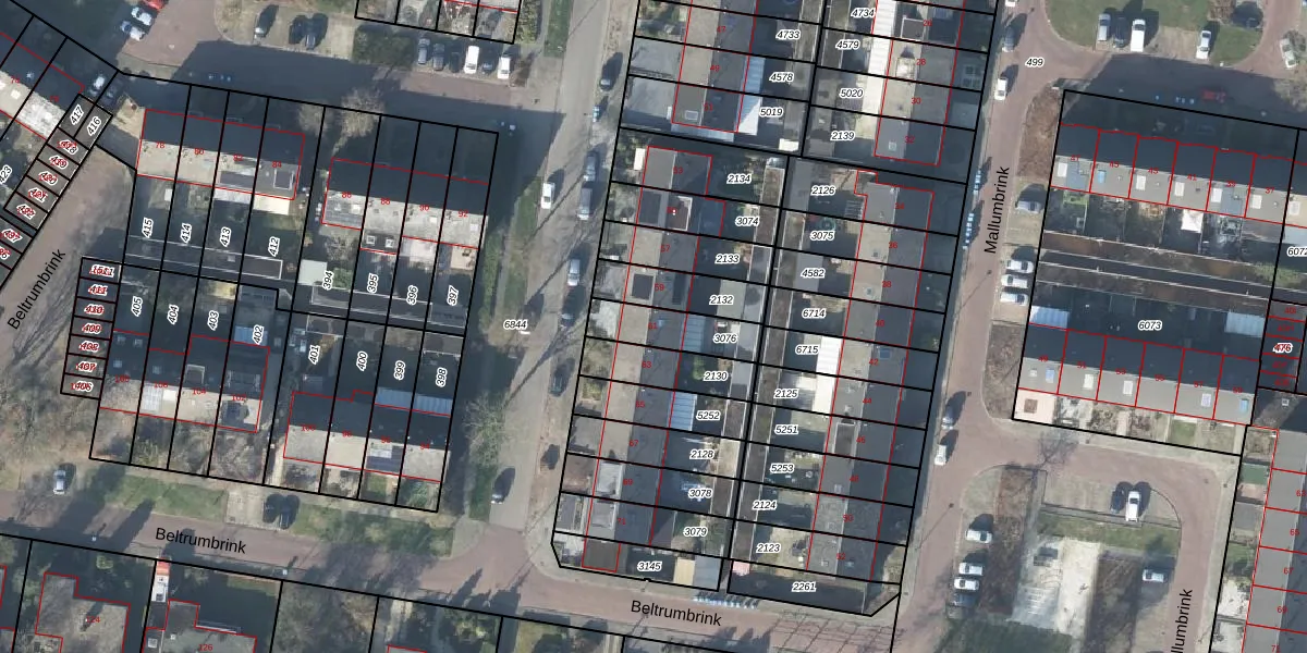 Het perceel waarop Beltrumbrink 61 staat heeft een oppervlakte van 163 m². Dit is een middelgroot perceel. De perceeloppervlakte wordt geregistreerd door het Kadaster. Gedetailleerde informatie over de maten van dit perceel kunt u vinden in het rapport Kadastrale kaart met maatvoering van Beltrumbrink 61.