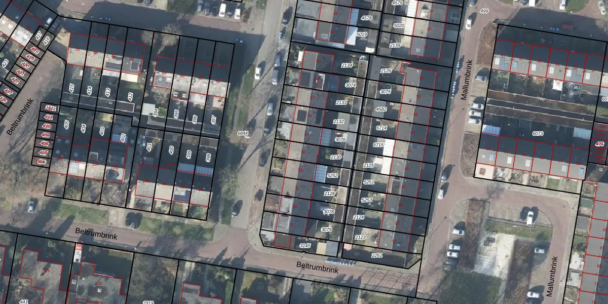 Het perceel waarop Beltrumbrink 63 staat heeft een oppervlakte van 163 m². Dit is een middelgroot perceel. De perceeloppervlakte wordt geregistreerd door het Kadaster. Gedetailleerde informatie over de maten van dit perceel kunt u vinden in het rapport Kadastrale kaart met maatvoering van Beltrumbrink 63.
