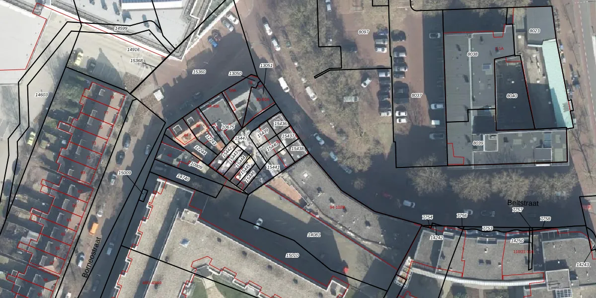 Gebruik de zoekbalk of klik op een perceel voor informatie over de adressen binnen dit perceel.