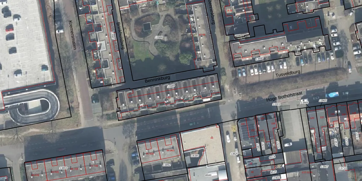 Het adres is gelegen op perceel 13989 in de sectie D en de kadastrale gemeente Enschede. De kadastrale aanduiding is aldus ESD00-D-13989. Het perceel is met 886 m² relatief groot. Het gemiddelde ligt in de kadastrale gemeente Enschede op 548,35 m². Het kleinste perceel in de kadastrale gemeente is 0 m² groot. De grootste perceeloppervlakte is 10,7 ha. Op het perceel liggen in totaal 22 adressen. De huidige grenzen van het perceel zijn digitaal in de Basisregistratie Kadaster (BRK) geregistreerd op 14-04-2010.