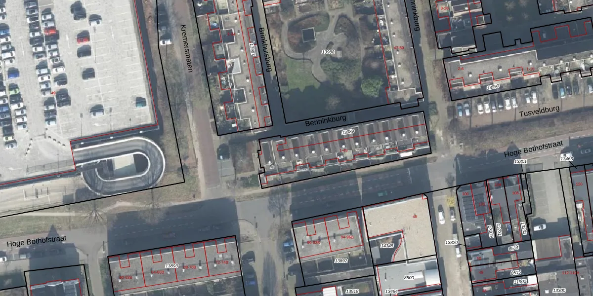 Benninkburg 45 is gelegen op kadastraal perceel ESD00D13989. Deze kadastrale aanduiding is uniek en wordt gebruikt door het Kadaster om eigendomsrechten en andere zakelijke rechten vast te leggen. Het perceel maakt onderdeel uit van de kadastrale gemeente Enschede.