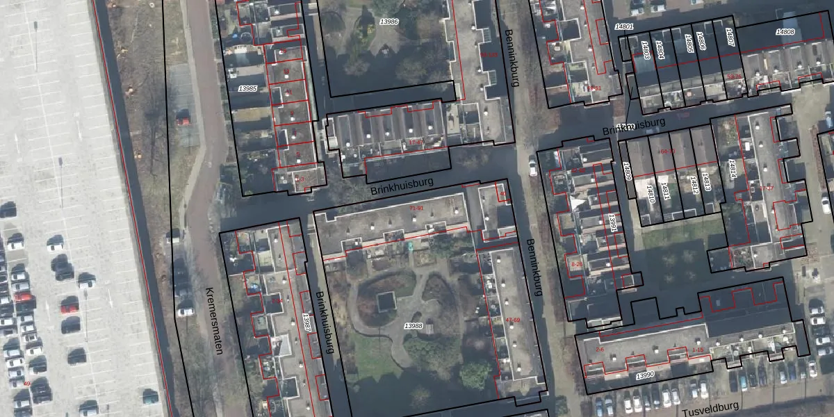 Het perceel waarop het adres ligt is ESD00-D-13988. De afkorting 'ESD00' staat voor kadastrale gemeente Enschede. De oppervlakte van het perceel is 2495 m². Dat is groter dan gemiddeld in Enschede, waar de gemiddelde perceeloppervlakte op 546,72 m² ligt. De grootste perceeloppervlakte in de kadastrale gemeente is 10,7 ha. De kleinste oppervlakte bedraagt 0 m². Er zijn 25 adressen aanwezig op het perceel. De huidige grenzen van het perceel zijn digitaal in de Basisregistratie Kadaster (BRK) geregistreerd op 14-04-2010.