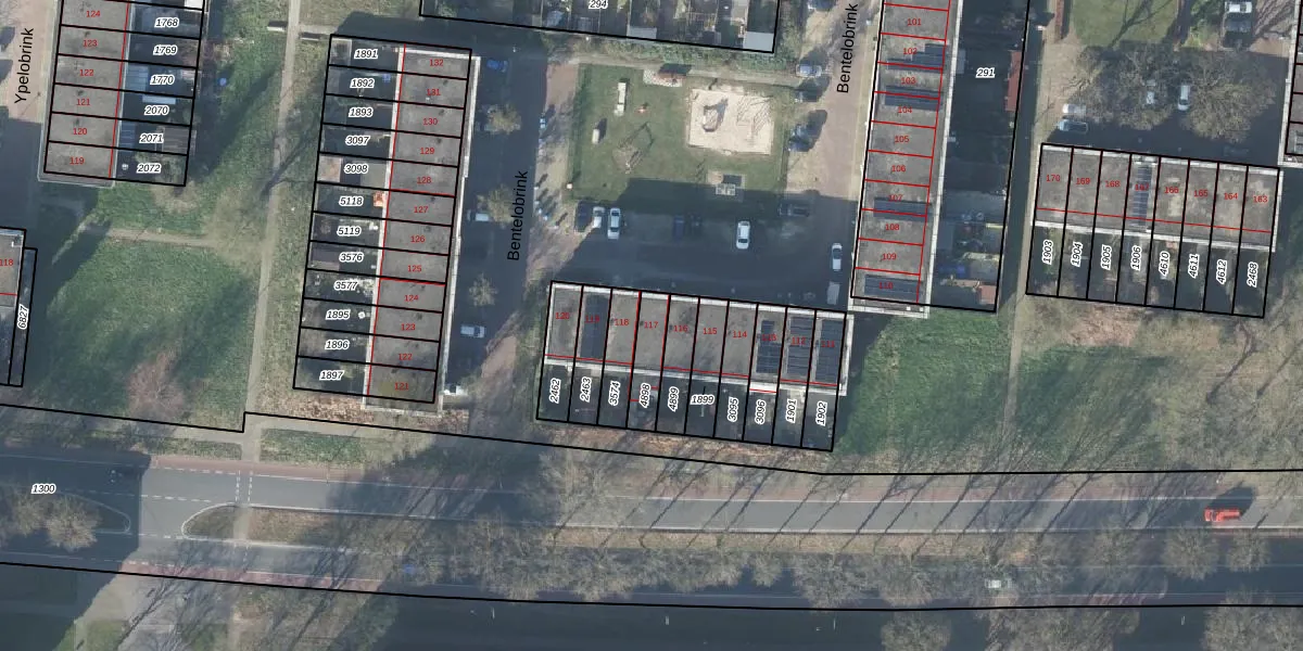 Het perceel waarop Bentelobrink 117 staat heeft een oppervlakte van 97 m². Dit is een klein perceel. De perceeloppervlakte wordt geregistreerd door het Kadaster. Gedetailleerde informatie over de maten van dit perceel kunt u vinden in het rapport Kadastrale kaart met maatvoering van Bentelobrink 117.
