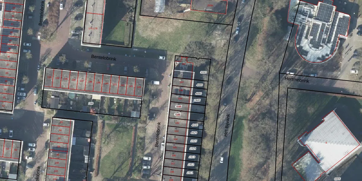 Gebruik de zoekbalk of klik op een perceel voor informatie over de adressen binnen dit perceel.