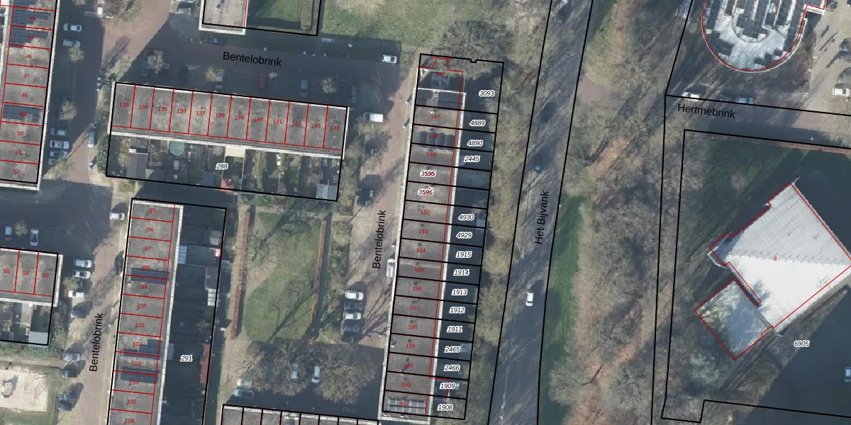 Het perceel waarop Bentelobrink 152 staat heeft een oppervlakte van 88 m². Dit is een klein perceel. De perceeloppervlakte wordt geregistreerd door het Kadaster. Gedetailleerde informatie over de maten van dit perceel kunt u vinden in het rapport Kadastrale kaart met maatvoering van Bentelobrink 152.