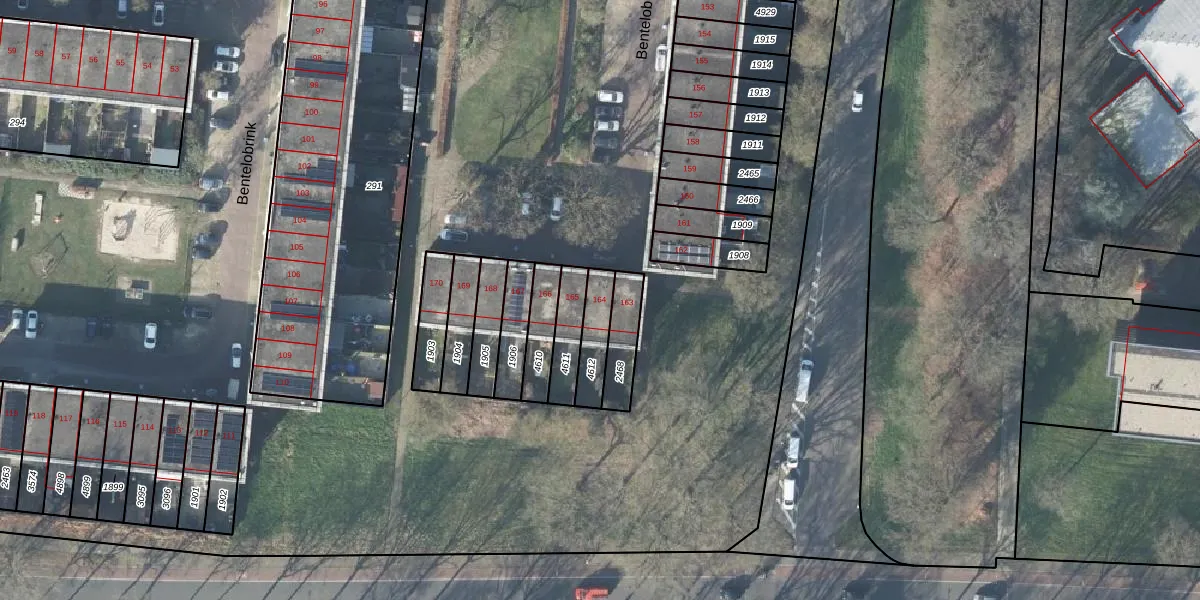 Bentelobrink 164 is gelegen op kadastraal perceel LNK00Z4612. Deze kadastrale aanduiding is uniek en wordt gebruikt door het Kadaster om eigendomsrechten en andere zakelijke rechten vast te leggen. Het perceel maakt onderdeel uit van de kadastrale gemeente Lonneker.