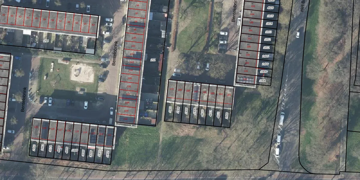 Bentelobrink 169 is gelegen op kadastraal perceel LNK00Z1904. Deze kadastrale aanduiding is uniek en wordt gebruikt door het Kadaster om eigendomsrechten en andere zakelijke rechten vast te leggen. Het perceel maakt onderdeel uit van de kadastrale gemeente Lonneker.