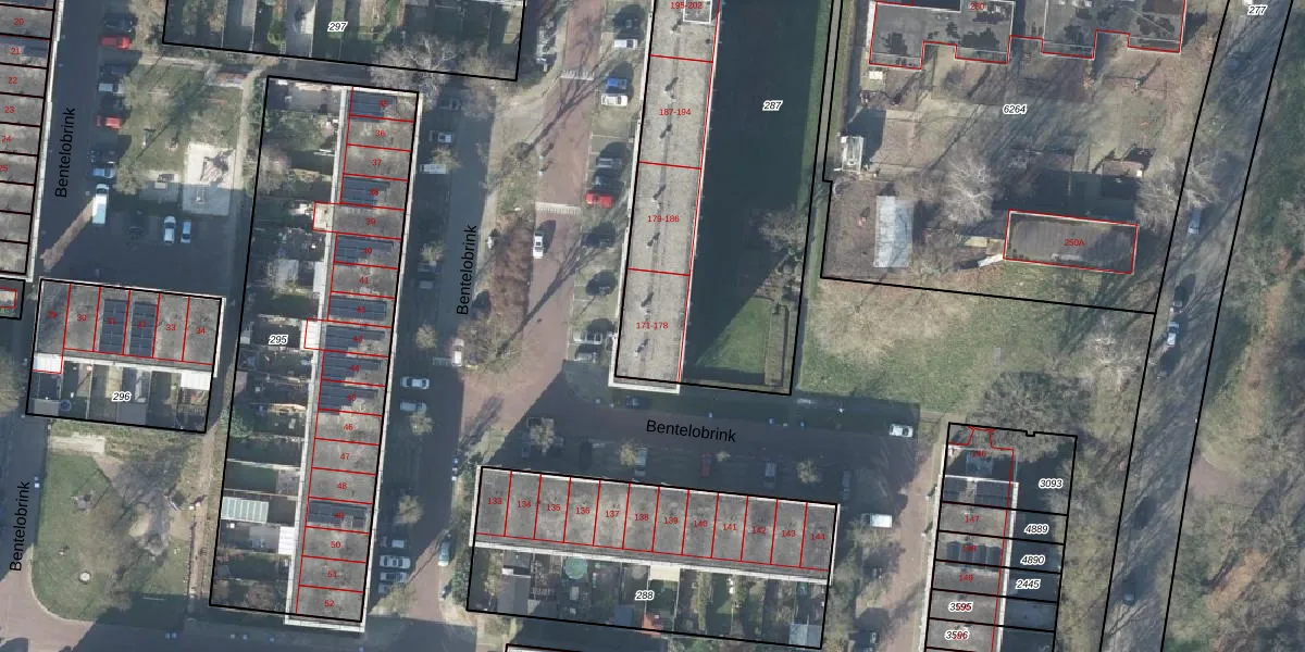Bentelobrink 173 is gelegen op kadastraal perceel LNK00Z287. Deze kadastrale aanduiding is uniek en wordt gebruikt door het Kadaster om eigendomsrechten en andere zakelijke rechten vast te leggen. Het perceel maakt onderdeel uit van de kadastrale gemeente Lonneker.