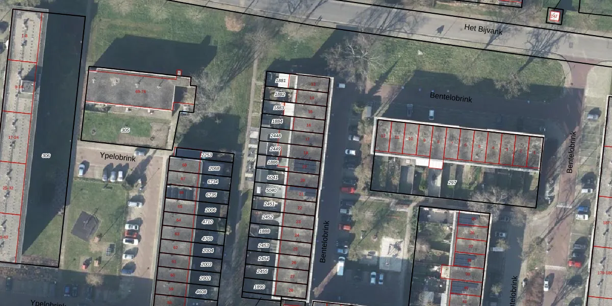 Het perceel waarop Bentelobrink 18 staat heeft een oppervlakte van 93 m². Dit is een klein perceel. De perceeloppervlakte wordt geregistreerd door het Kadaster. Gedetailleerde informatie over de maten van dit perceel kunt u vinden in het rapport Kadastrale kaart met maatvoering van Bentelobrink 18.