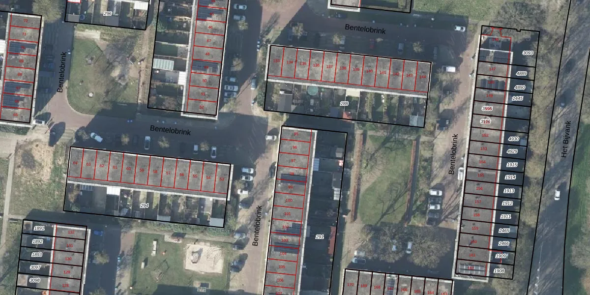 Het perceel waarop Bentelobrink 96 staat heeft een oppervlakte van 1609 m². Dit is een zeer groot perceel. De perceeloppervlakte wordt geregistreerd door het Kadaster. Gedetailleerde informatie over de maten van dit perceel kunt u vinden in het rapport Kadastrale kaart met maatvoering van Bentelobrink 96.