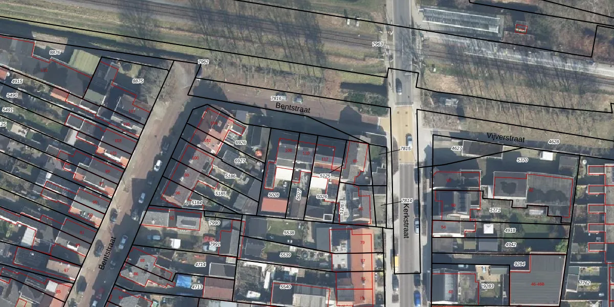 Bentstraat 110 is gelegen op kadastraal perceel LNK00E5027. Deze kadastrale aanduiding is uniek en wordt gebruikt door het Kadaster om eigendomsrechten en andere zakelijke rechten vast te leggen. Het perceel maakt onderdeel uit van de kadastrale gemeente Lonneker.