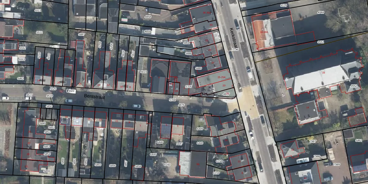 Het perceel waarop Bentstraat 2 staat heeft een oppervlakte van 433 m². Dit is een groot perceel. De perceeloppervlakte wordt geregistreerd door het Kadaster. Gedetailleerde informatie over de maten van dit perceel kunt u vinden in het rapport Kadastrale kaart met maatvoering van Bentstraat 2.